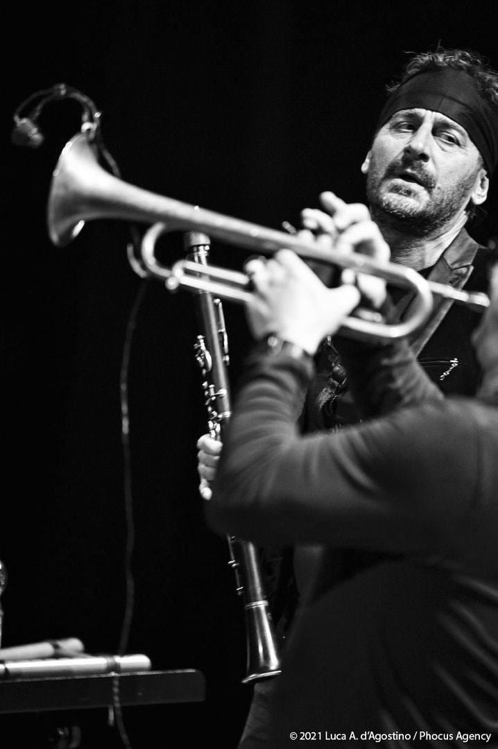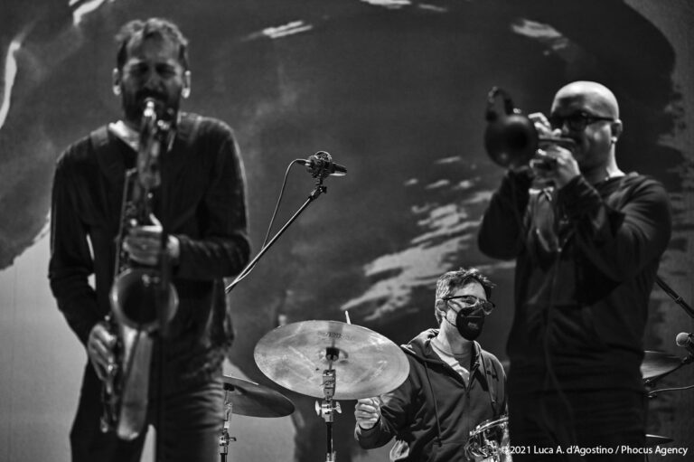 Sacile, 15/05/2021 – Controtempo – Teatro Zancanaro – Il Volo del Jazz – FRANCESCO BEARZATTI TINISSIMA “ZORRO” feat. DAVIDE TOFFOLO – Francesco Bearzatti: sax tenore, clarinetto – Giovanni Falzone: tromba – Danilo Gallo: basso elettrico – Zeno de Rossi: batteria – Davide Toffolo: live painting.